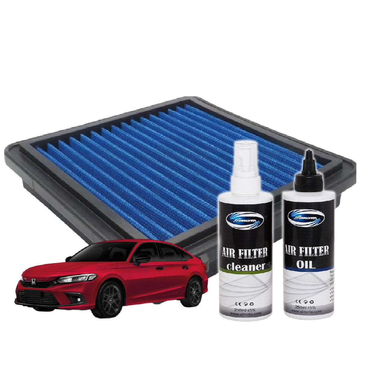 This set Comes With 1 PCS Air filter+ 1 Bottle Cleaner + 1 Bottle Oil