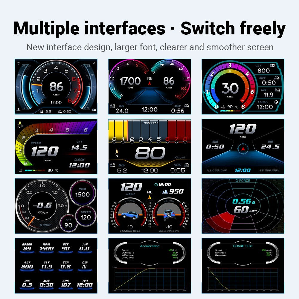OBD smart digital device is equipped with a very powerful detection for error code, the device can display the error code information clearly in text form, and it can clear the fault information and display accelerating competitive mode, brake performance est mode, read the entire vehicle date stream information and the other function.