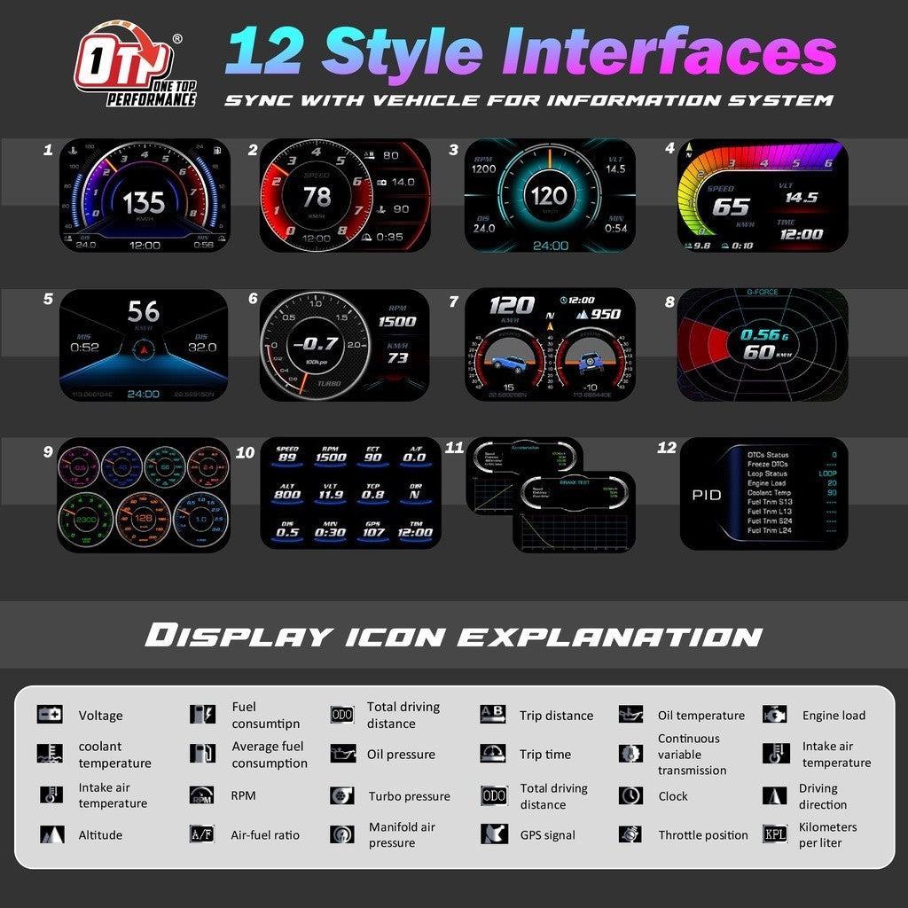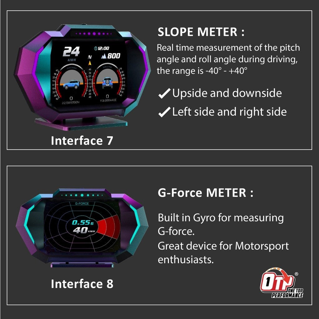 OTP-H02 XS P3 OBD2 Meter Gauge Meter OBD Meter Car GPS Alarm Speed Gauge display Hud Water temp RPM Turbo Boost HUD