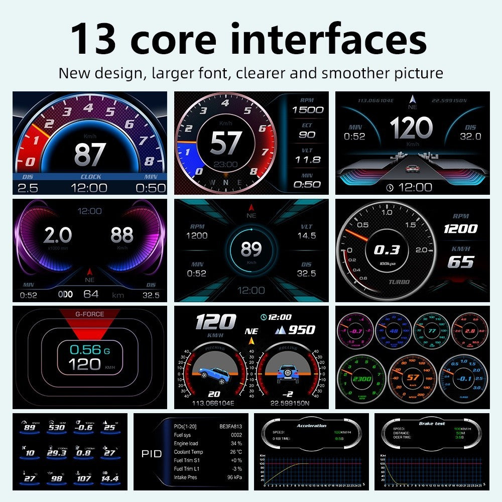 OBD smart digital device is equipped with a very powerful detection for error code, the device can display the error code information clearly in text form, and it can clear the fault information and display accelerating competitive mode, brake performance est mode, read the entire vehicle date stream information and the other function.