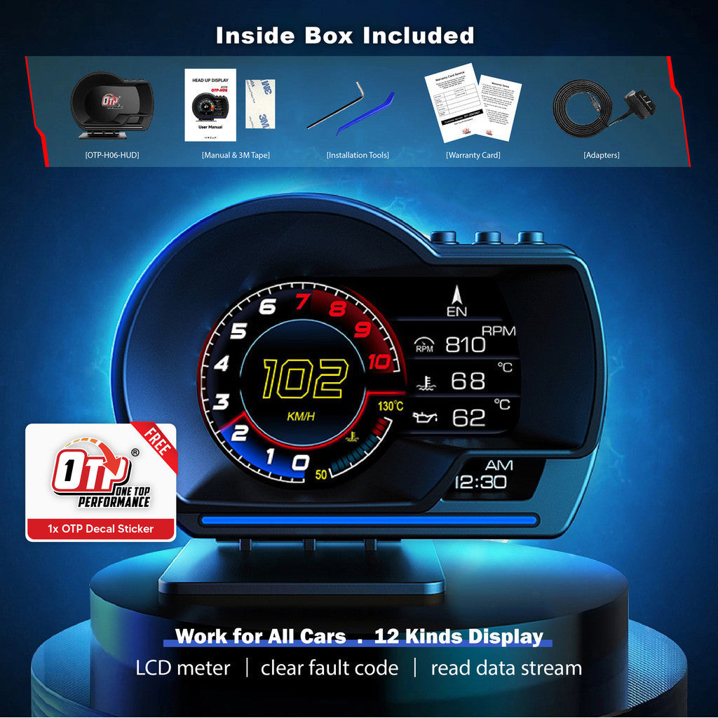 OTP-H024 H06+ OBD2 Meter Speedometer Gauge P24 P6 HUD WaterTemp Turbo Proton Honda Perodua Toyota Nissan Mitsubishi Myvi