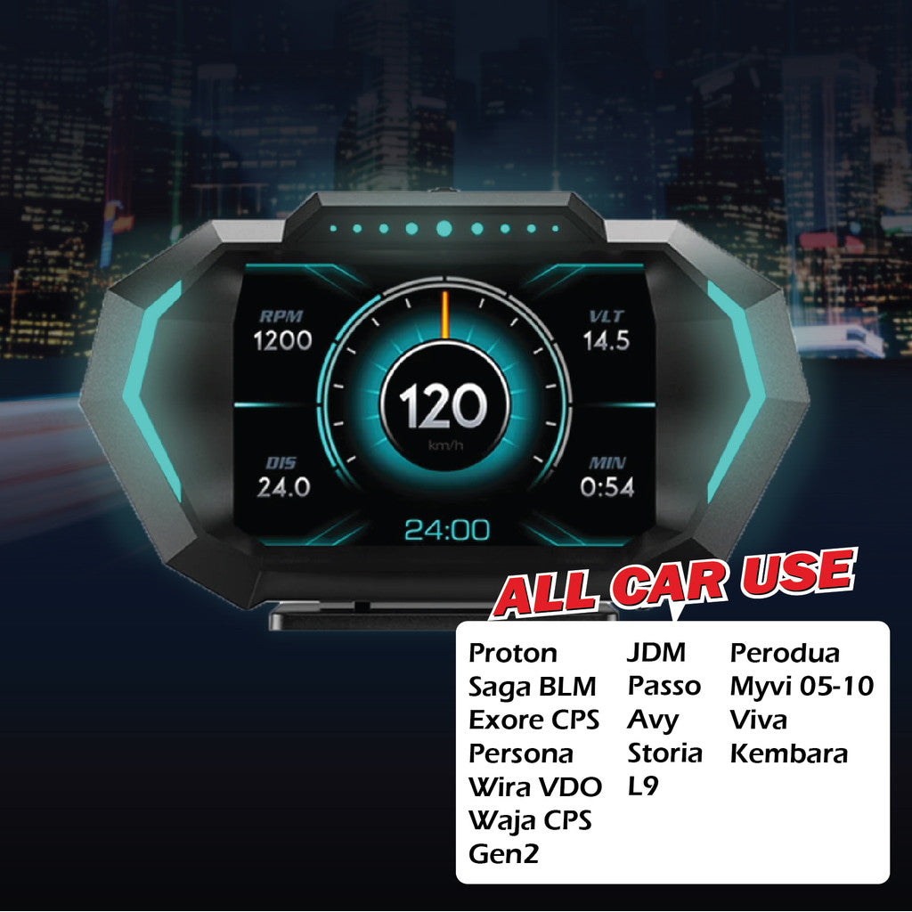 OTP-H024 OBD2 Meter Speedometer Gauge P24 HUD Water Temp Turbo Toyota Honda Perodua Myvi Old Viva Avanza Old Proton Axia