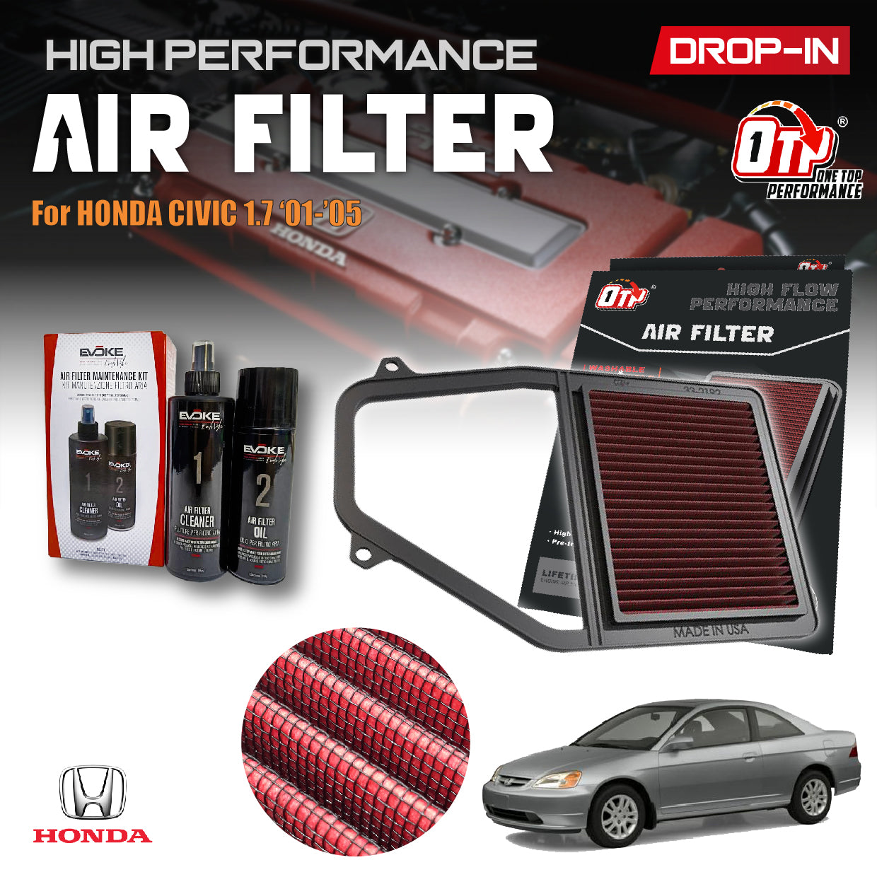 OTP Washable Drop In Air Filter Performance Honda CIVIC DX EX GX HX LX Ferio VI VII 1.7L L4 Gas Engine Enjin
