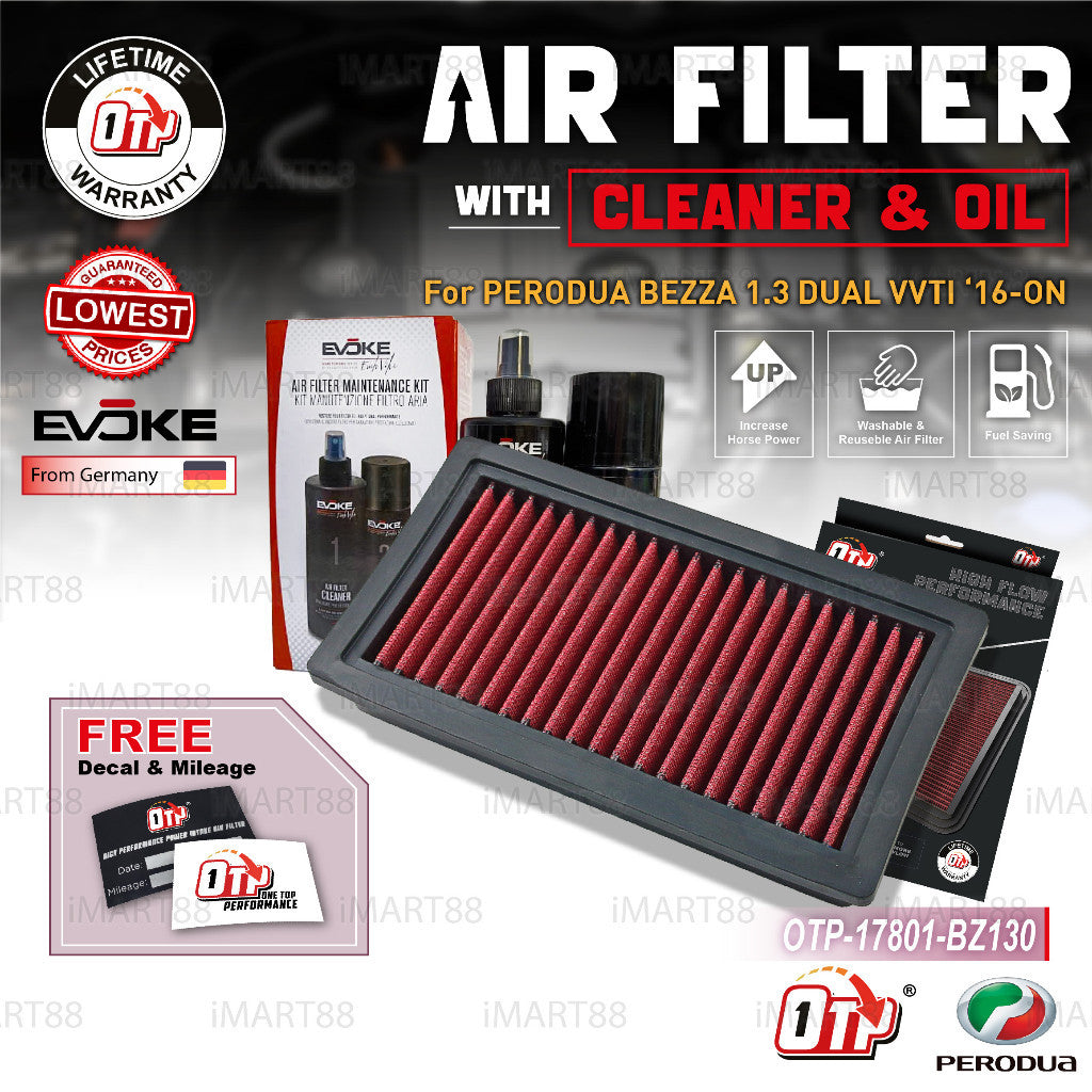 OTP Washable Drop In Air Filter Performance Perodua Perodua BEZZA 1.3 Dual VVTI 16-ON Element Enjin Engin Penapis
