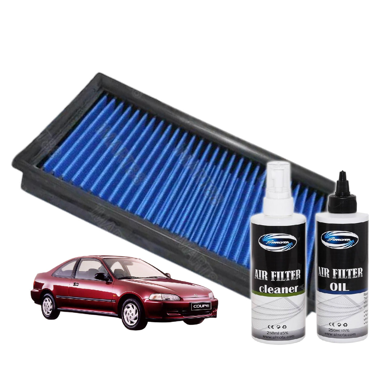 This set Comes With 1 PCS Air filter+ 1 Bottle Cleaner + 1 Bottle Oil